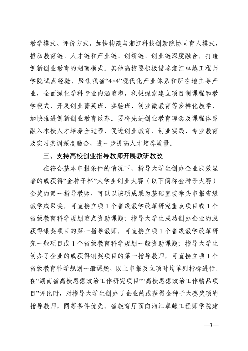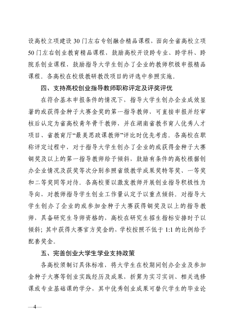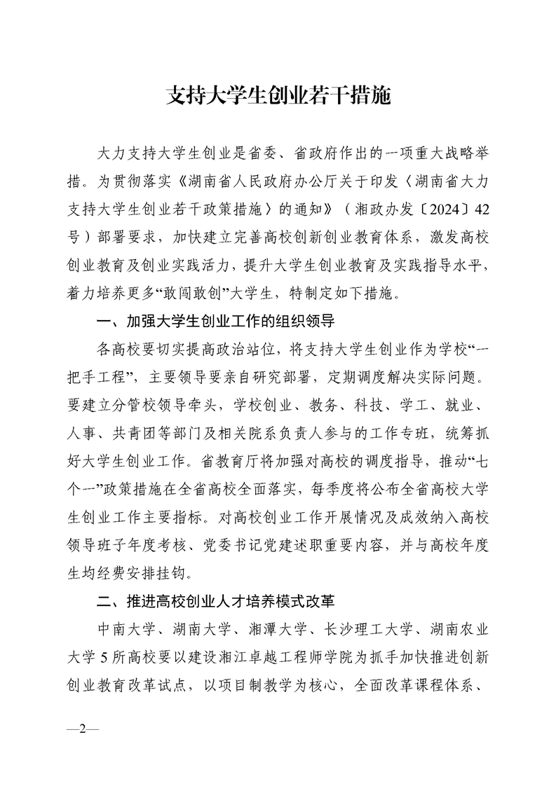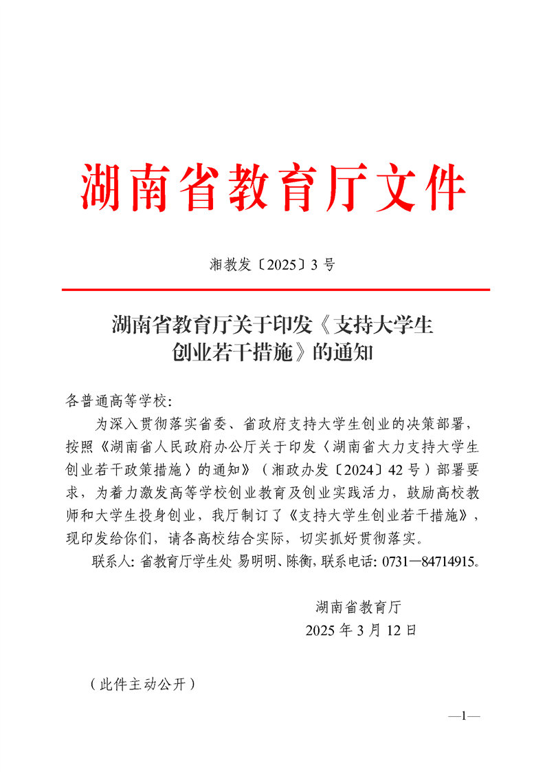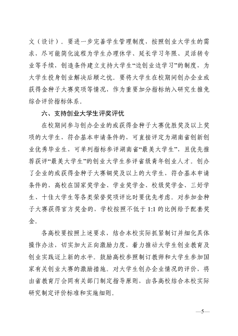 湖南省教育厅关于印发《支持大学生 创业若干措施》的通知