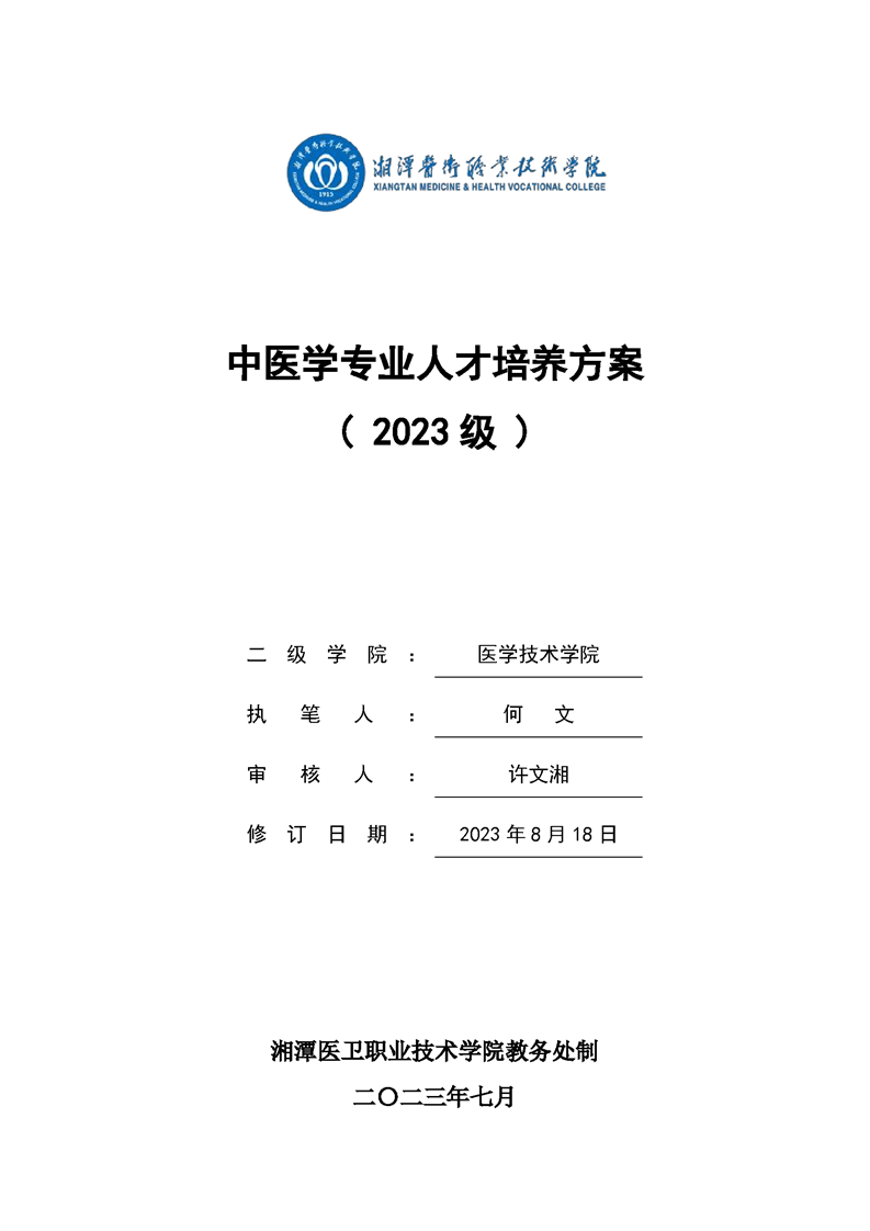 2023级中医学专业人才培养方案