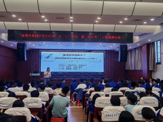 在湘潭市第四中学,我校心理健康教育团队的教师们聚焦青少年常见的考前焦虑等问题,以趣味互动、情境体验的方式,引导同学们正确认识心理健康的重要性。通过讲解科学减压策略(如深呼吸、积极倾诉、时间管理)、介绍寻求帮助的途径(老师、家长、心理热线等),以及组织轻松的减压小游戏,帮助学生们学会觉察情绪变化、建立积极心态,提升应对中考的心理韧性。