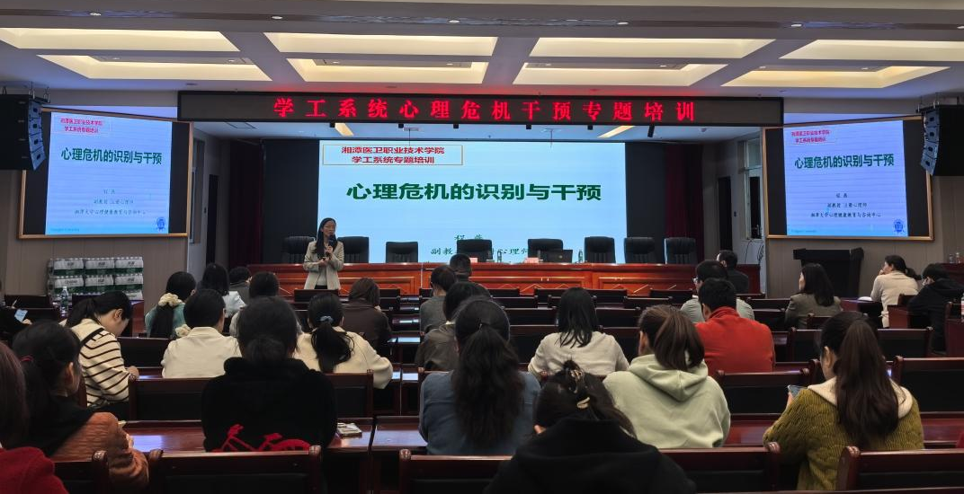 为进一步提升我校教师对学生心理危机的识别、评估与干预能力,构建全方位、多层次的大学生心理健康防护体系,切实守护学生身心健康与校园和谐稳定,10月24日下午,我校在护理楼一楼报告厅成功举办心理危机识别与干预培训。