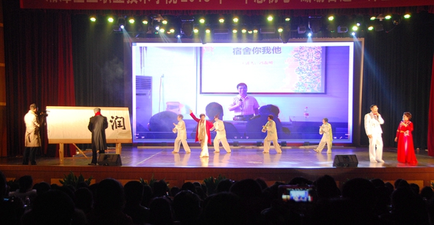 据悉,本台晚会由校工会、校团委联合主办,集艺术欣赏性、思想教育性、生活娱乐性为一体,作为我校的传统活动之一,至今已成功举办12届,多类型,多层次的节目贴近全校教职员工与青年学子的观赏需求。从节目策划编排到登台演出历时2个多月,历经4轮节目审核和2次彩排,由500余名演职人员共同完成了16个极具特色文艺节目,演出人员总数为历年之最,这也是华亿网页版更名、转型发展后的首次师生同台演出。参演人员从5岁多的教职工子弟到80多岁的退休老教师,涵盖教学、科研、管理、教辅等各个岗位的教职员工代表和学生。为了更好的展现出晚会效果,华亿网页版还新添置了LED全屏背景屏,节目动画背景和视频全部由各节目团队自行量身定做,搭配先进灯光、音响设备,观赏效果极佳,为整台晚会成功举办提供硬件支持。同时,校团委依托官方微信平台开启了微信直播,共计近万人次观看了直播,并通过留言、点赞、晒图等形式进行互动,受到了师生员工广泛好评,彰显了学院的凝聚力和战斗力,诠释了医卫职院人同心同力,携手共进,奋勇拼搏的初心。