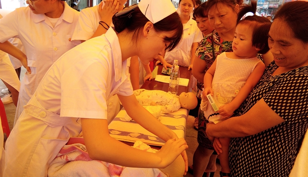 活动中,村医实践、急救知识咨询、口腔健康咨询、中医保健咨询、科学育儿咨询等组别在街道集中开展了医疗卫生咨询和服务,并运用各种模具进行现场演示,引得当地群众纷纷驻足观看,咨询体验。村医下乡实践小分队为当地群众免费测量血压、发放药品、提供男性健康咨询,口腔健康知识宣讲队对当地群众进行免费口腔知识宣讲、口腔健康监测、简易口腔疾病的整疗和进一步检查建议;急救知识宣讲队为当地群众进行了心肺复苏、烧烫伤、溺水、中暑等情况急救知识培训以及现场演示互动;育儿知识宣讲队为当地群众演示婴儿抚触、沐浴演示并进行现场疑问解答;中医保健实践队为当地群众进行艾灸、保健按摩、拔火罐、康复保健只是宣传、中医知识普及宣讲;“青年红色筑梦之旅”实践队在专业指导老师的带领下,深入茶花村进行走访,与困难群众进行接队帮扶,帮助他们开展专业的心理疏导。