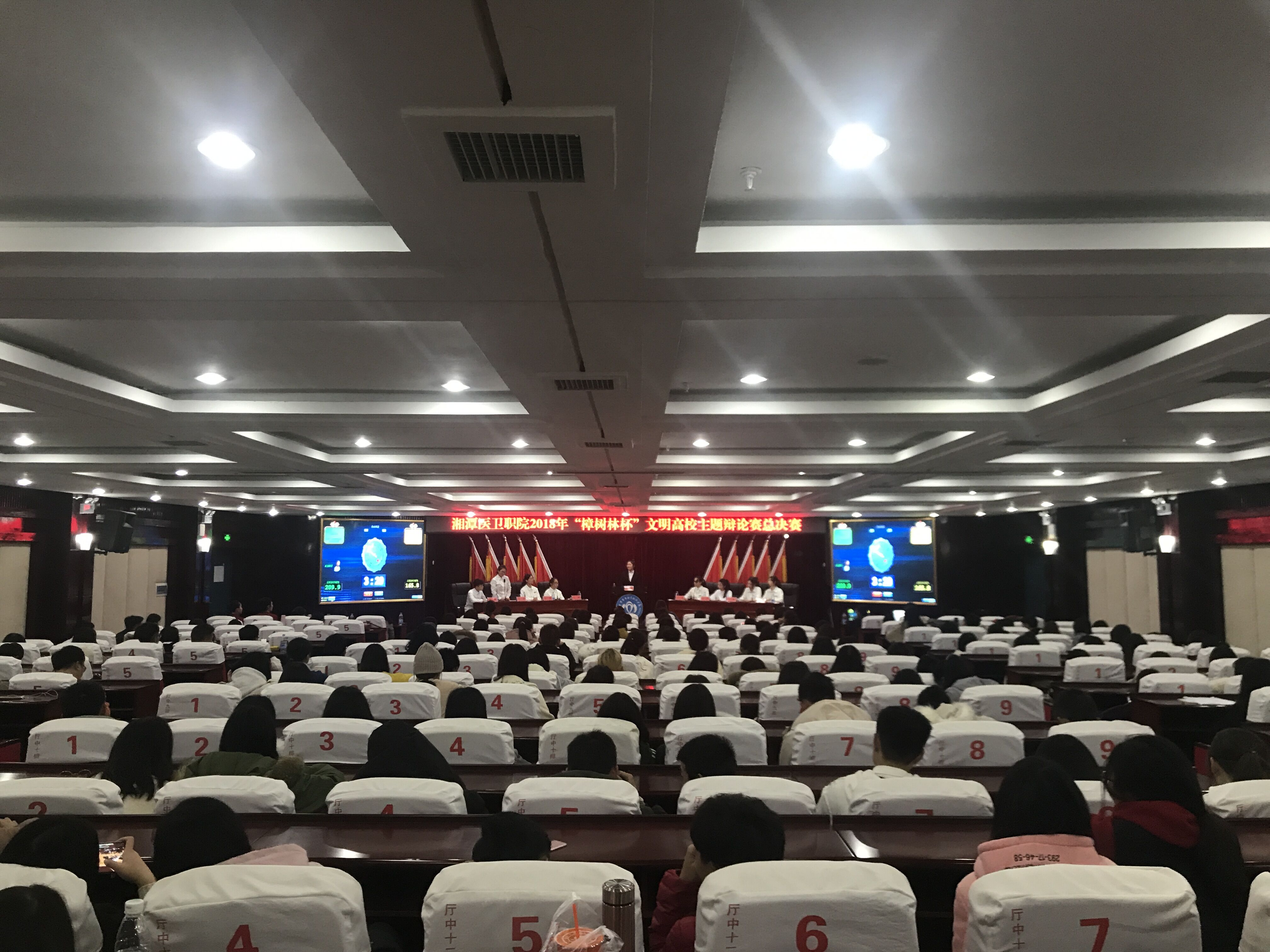12月4日晚,由校团委主办、医技学院团总支承办的2018年“樟树林杯”文明高校主题辩论赛总决赛在校本部举行。校党委委员、党委组织宣传部长谭进担任评委并为获奖团队颁奖。全校专兼职团干部和学生代表260余人观看了比赛。