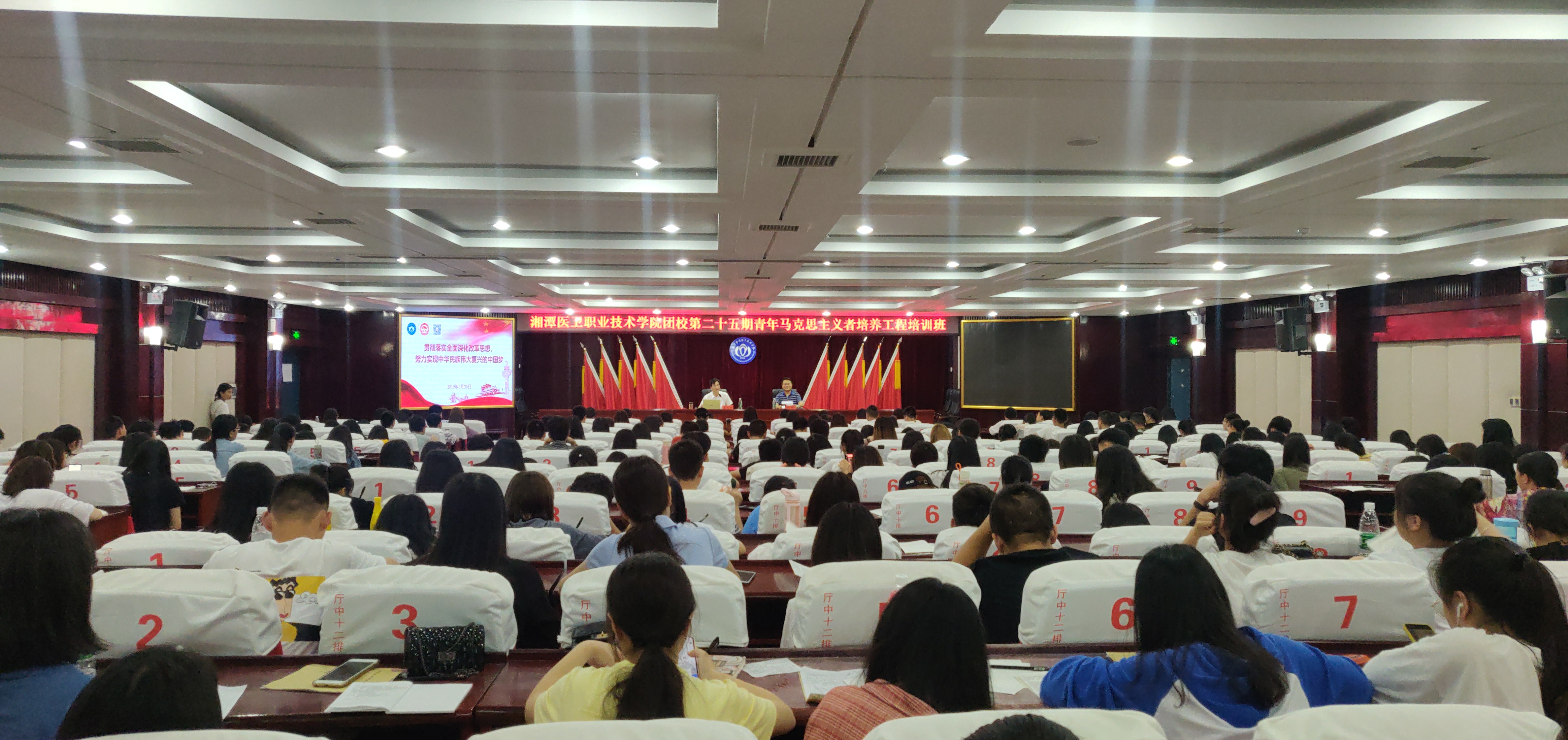 6月12日,校团校组织的第二十五期青年马克思主义者培养工程培训班系列活动之“不忘初心 牢记使命”党团知识抢答赛在护理楼一楼报告厅顺利举行,全体260名学生骨干也通过考核顺利结业。培训班特邀校党委副书记左泽文,副校长李建光,副校长何文波、副校长何建新,党委委员、统战部、党政办主任成强为学员授课。校团委学生会、学工处校社联和各二级学院学生骨干参加培训。