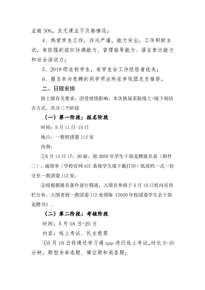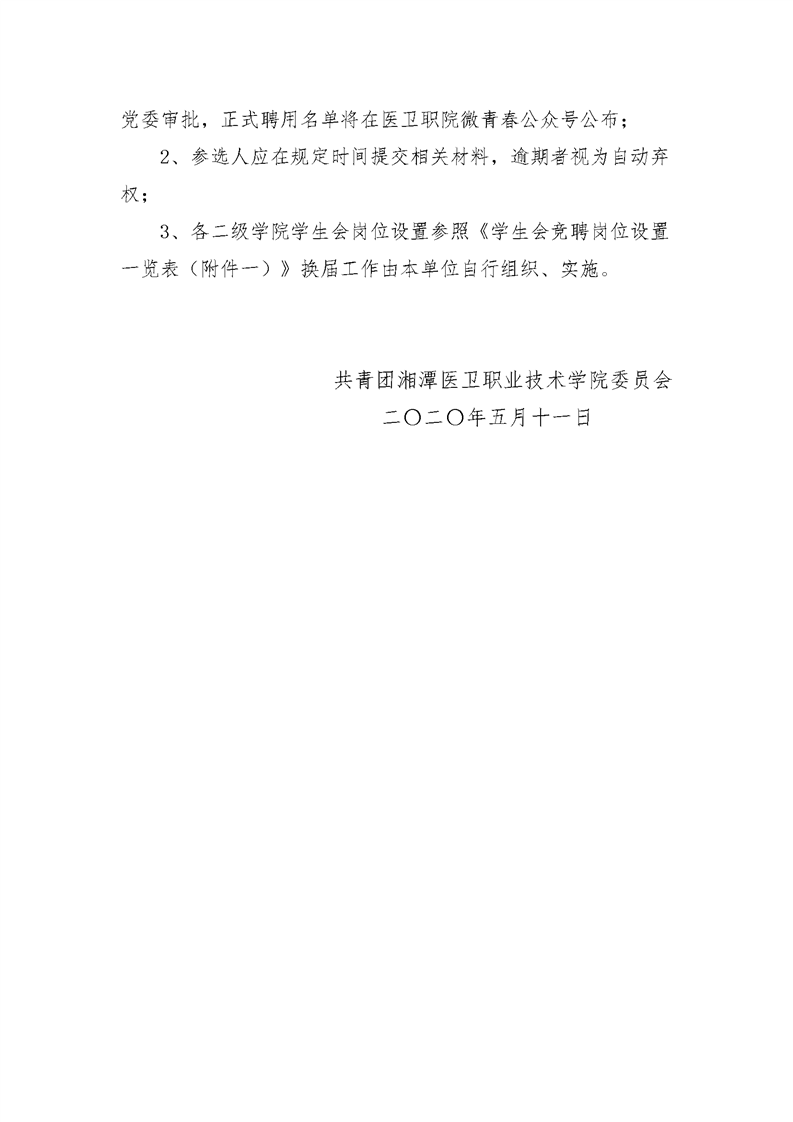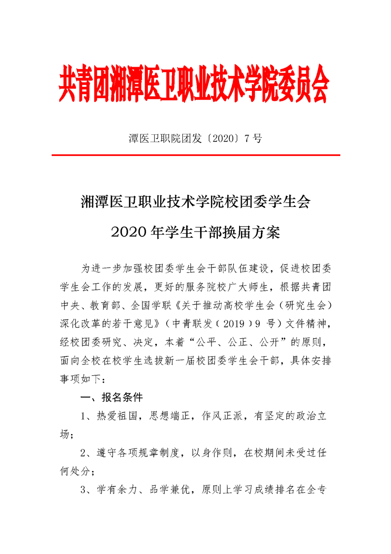 潭医卫职院团发[2020]7号:华亿(中国)-华亿(中国)校团委学生会2020年学生干部换届方案