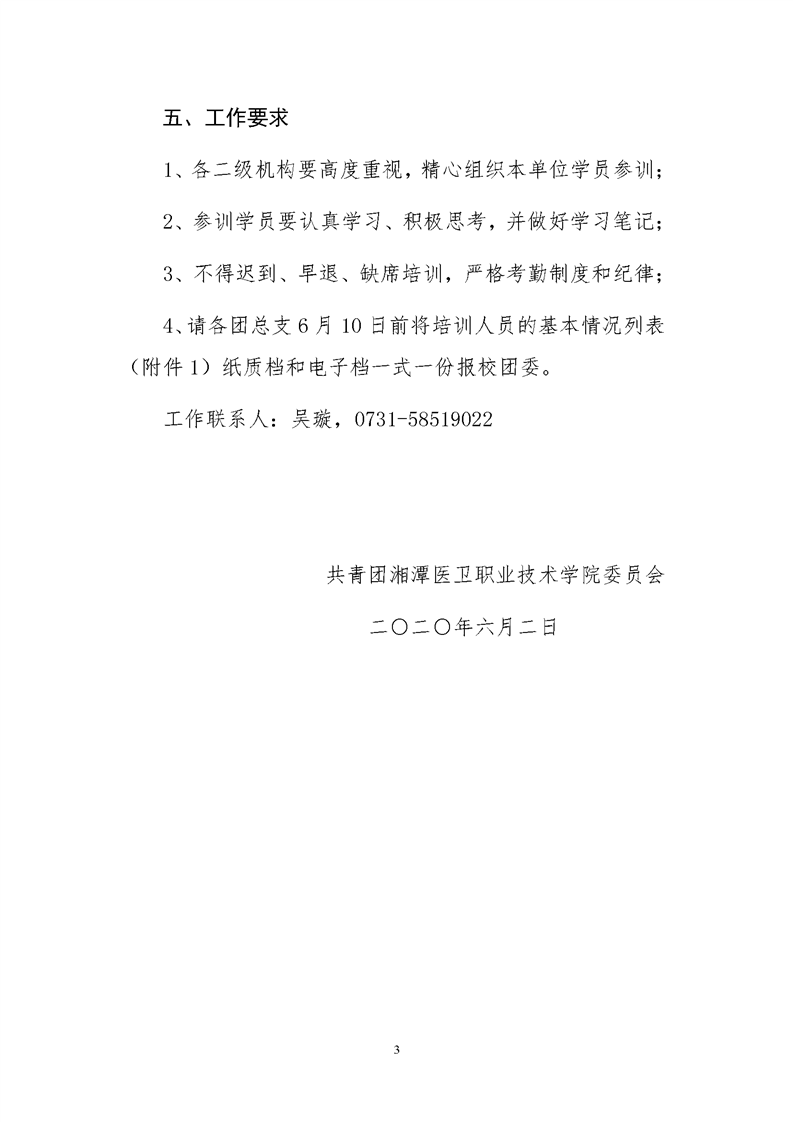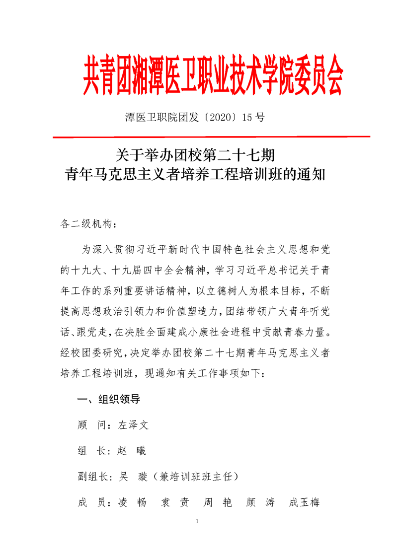 潭医卫职院团发[2020]15号:关于举办团校第二十七期青年马克思主义者培养工程培训班的通知
