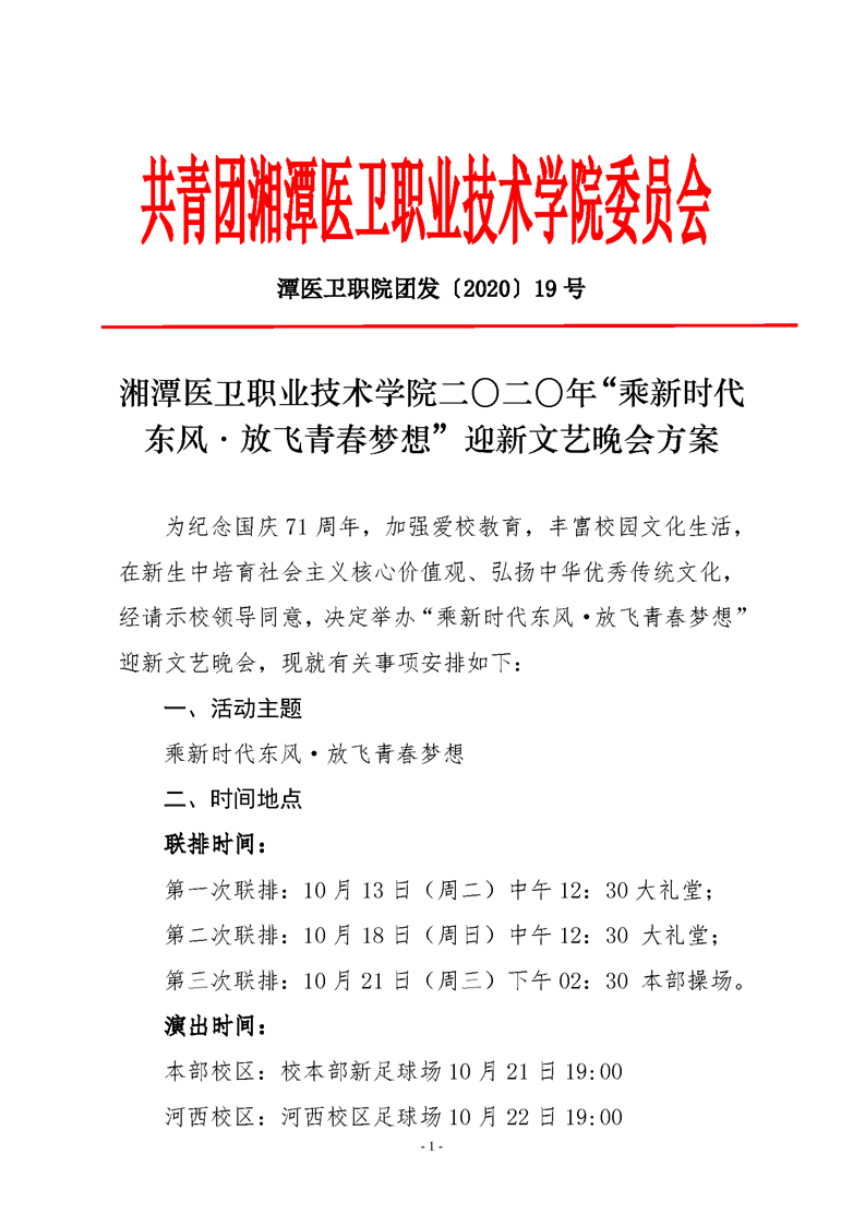 潭医卫职院团发[2020]19号:2020年迎新晚会活动方案