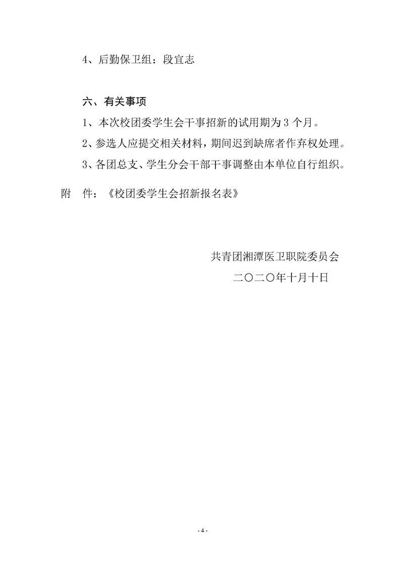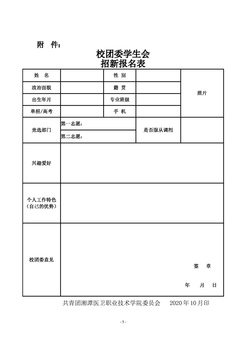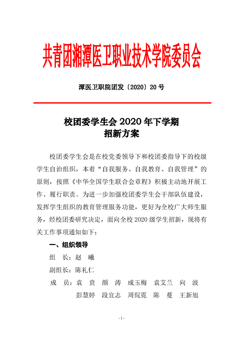 潭医卫职院团发[2020]20号:校团委学生会2020年下学期招新方案