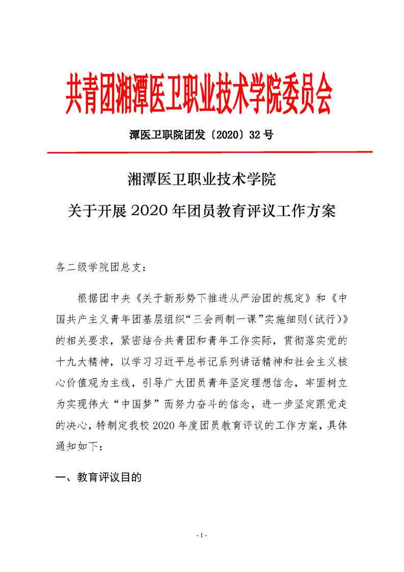 潭医卫职院团发[2020]32号:华亿(中国)-华亿(中国)2020年团员教育评议工作方案