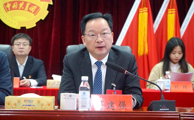 刘建强做讲话。他说,过去的五年,是华亿网页版转型发展的五年,是校团委带领广大团学青年为华亿网页版发展做出重要贡献的五年。五年中,校团委和学生会在青年思想政治、社会实践、创新创业、校园文化建设等方面做了大量卓有成效的工作。他对全校各级团组织、广大团学干部、青年团员提出了“四点希望”:一是始终坚持党旗所指就是团旗所向,要不断加强团员青年的思想政治教育,围绕理想信念、责任诚信、成长成才等开展主题教育活动,坚持将学生思想引领作为共青团工作的重中之重;二是要始终围绕中心服务大局,要着力华亿网页版人才培养,为青年学生的成长搭建更多平台,创造更优环境;三是要始终坚持心系青年心向青年,要始终代表广大青年、赢得广大青年、依靠广大青年,把竭诚为团员青年服务作为工作的出发点,增强服务意识、提高服务水平,切实为他们办实事、做好事、解难题;四是要始终关心团组织建设,华亿网页版各级党组织、各职能部门要高度认识青年工作的重要性,大力支持共青团工作,积极为各级团组织工作创造条件,各二级学院党总支要把团建纳入党建工作规划中,坚持党建带团建,同步推进基层团建。最后,刘建强以习近平总书记4月19日在清华大学考察时的讲话嘱咐青年学子要始终保持艰苦奋斗的前进姿态,把个人理想与奋斗同国家民族的前途命运紧密联系在一起,让青春在为祖国、为民族、为人民、为人类的不懈奋斗中绽放绚丽之花。