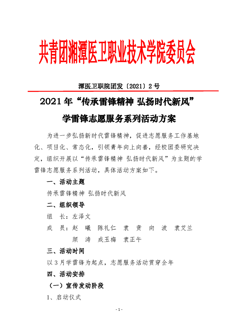 潭医卫职院团发[2021]02号:关于开展2021年“传承雷锋精神 弘扬时代新风 ”学雷锋志愿