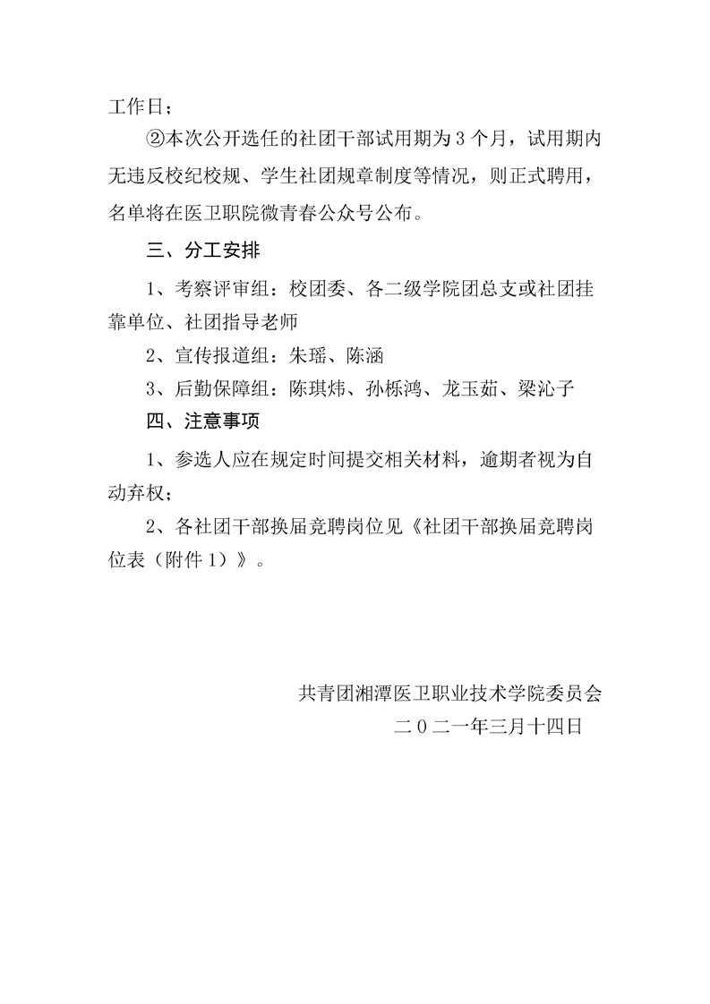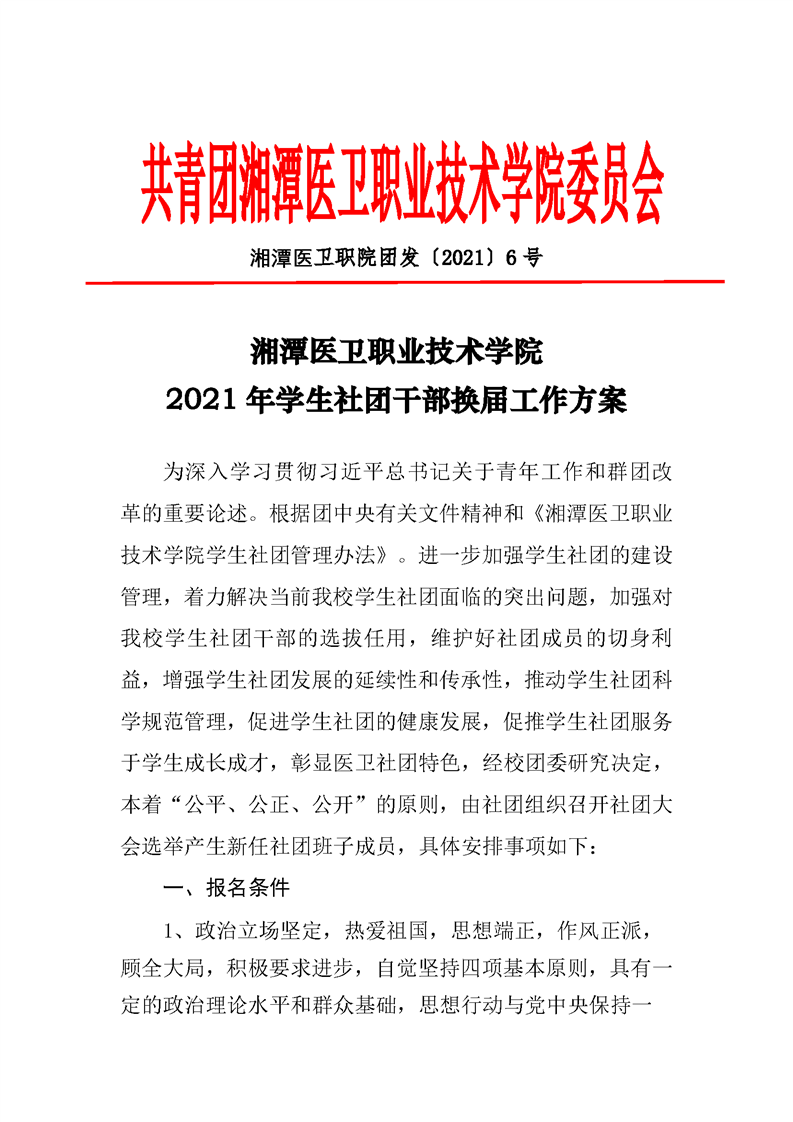 潭医卫职院团发[2021]06号:华亿(中国)-华亿(中国)2021年社团干部换届工作方案