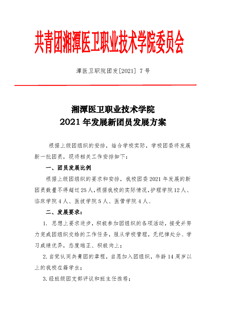 潭医卫职院团发[2021]07号:湘潭医卫职业技术学2021年发展新团员发展方案