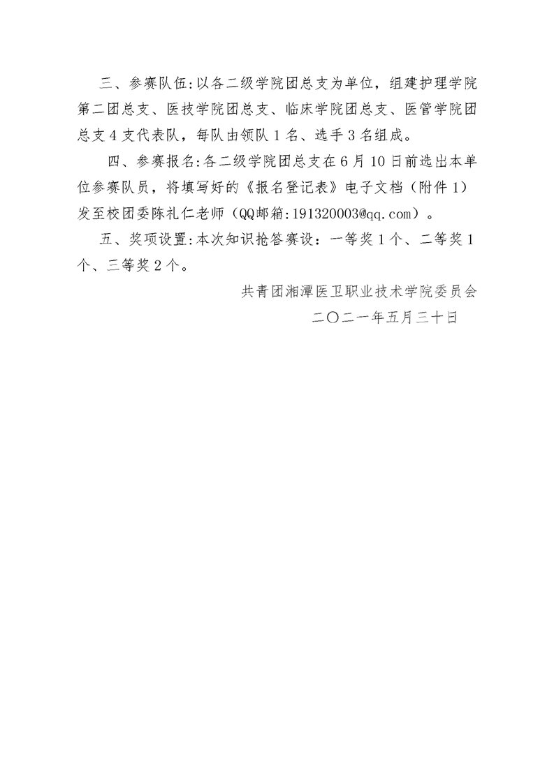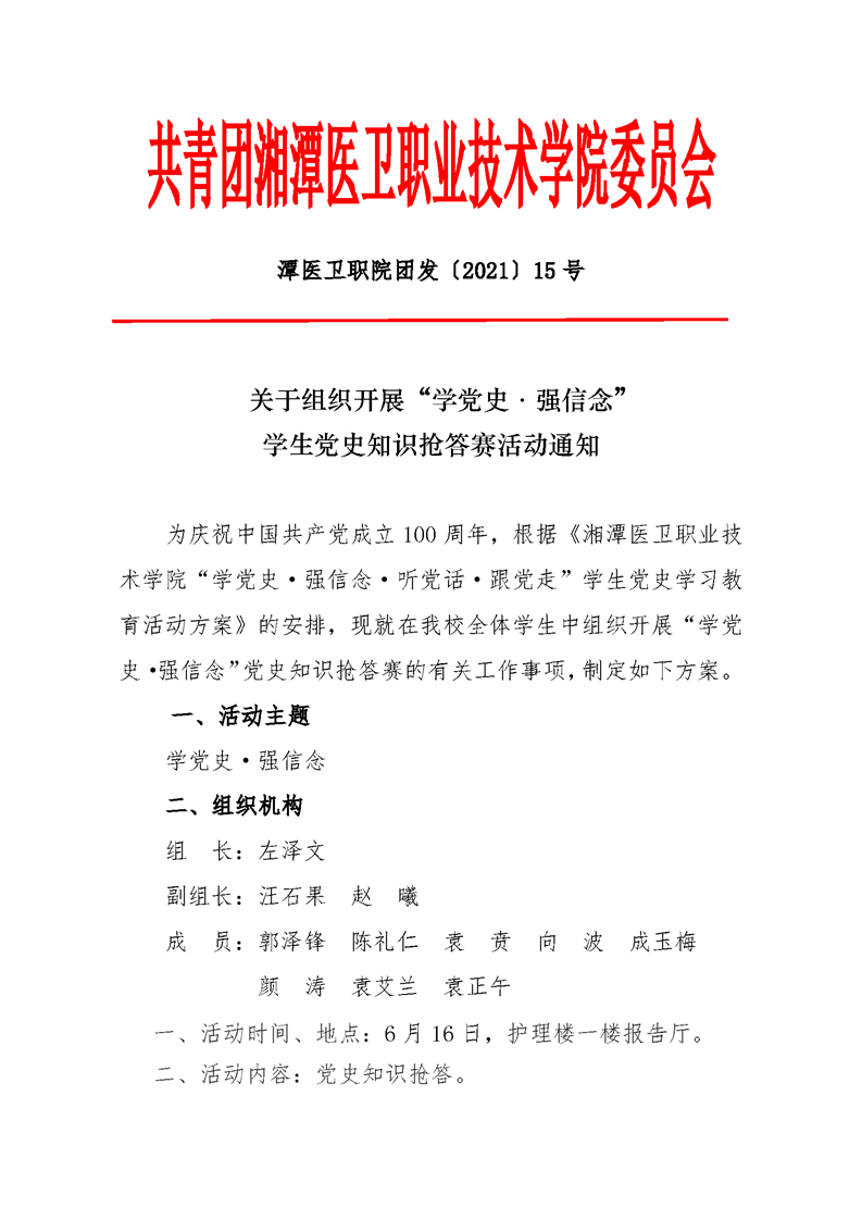 潭医卫职院团发[2021]22号:潭医卫职院党史知识抢答赛通知