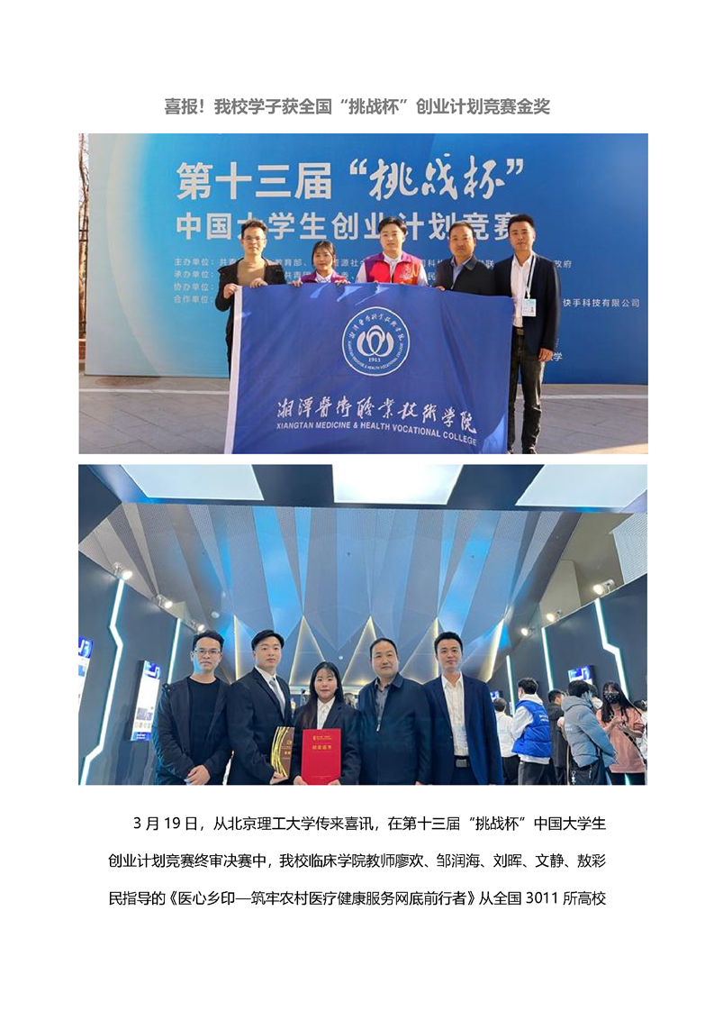 喜报!我校学子获全国“挑战杯”创业计划竞赛金奖