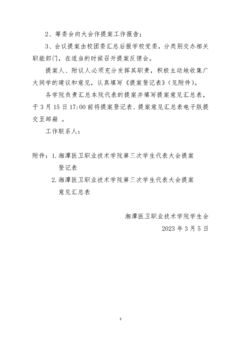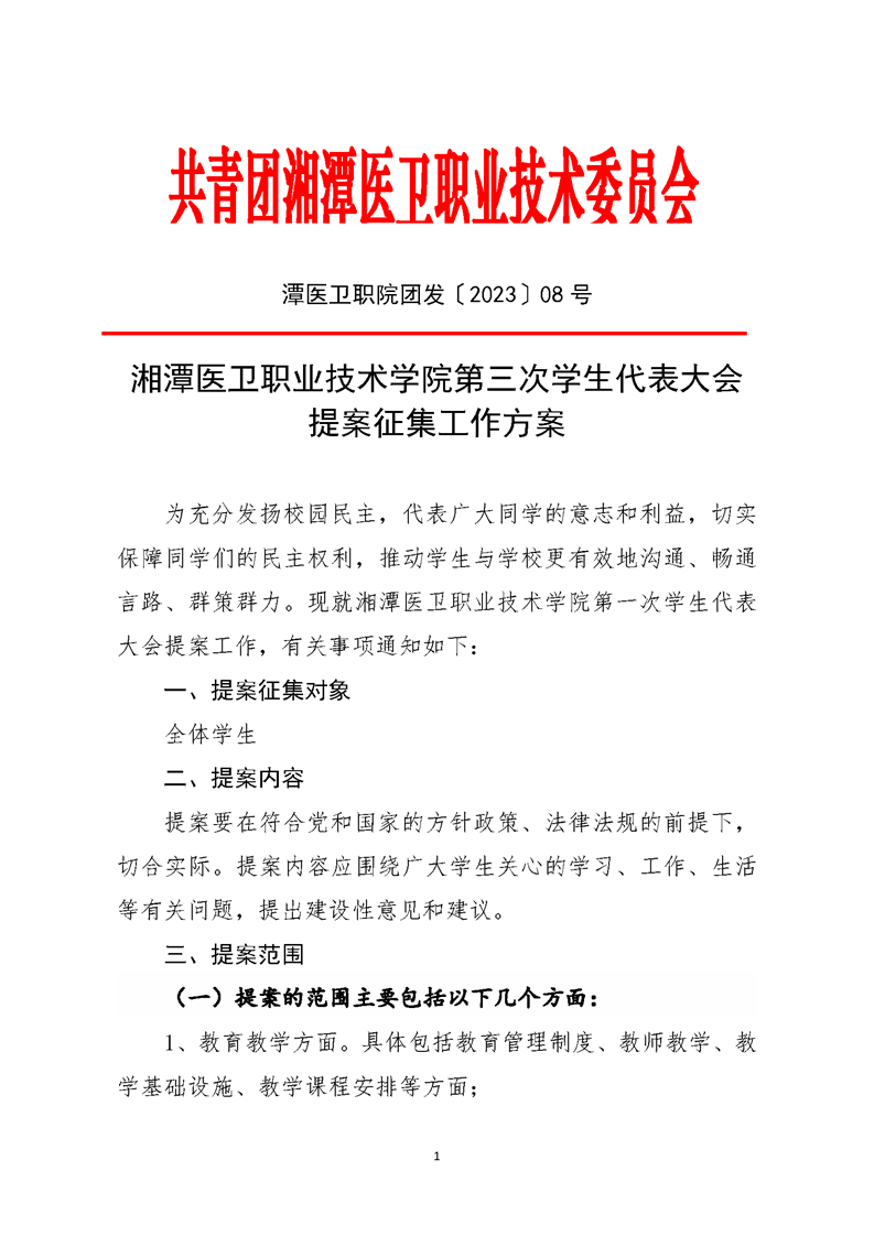 潭医卫职院团发[2023]08号:华亿(中国)-华亿(中国)第三次学生代表大会提案征集工作方案