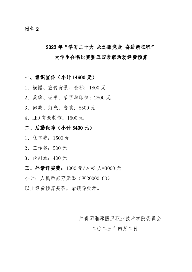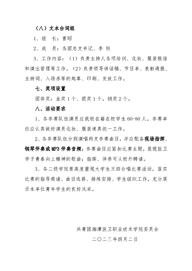 潭医卫职院团发[2023]11号:关于举办大学生合唱比赛暨五四表彰活动的方案