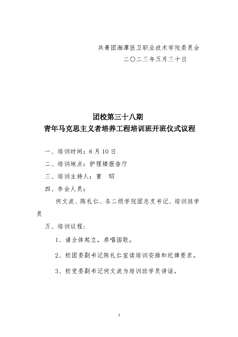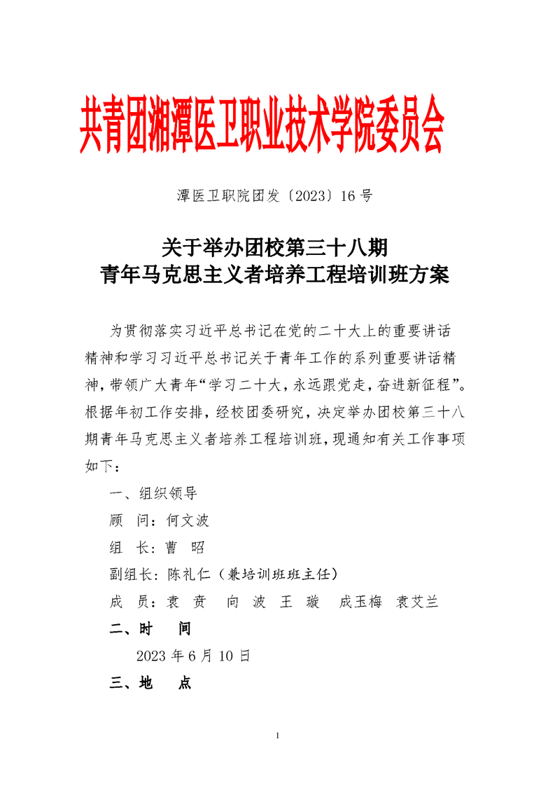 潭医卫职院团发[2023]16号:关于举办团校第三十八期青年马克思主义者培养工程培训班的通知