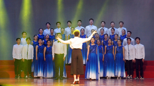 表彰大会后,“共唱青春梦、喜迎十九大”大学生合唱比赛拉开了第十四届校园文化艺术节的序幕。各参赛队伍带来的《歌唱祖国》、《中国军魂》、《国家》、《梨花又开放》、《飞来的花瓣》等歌曲让现场观众感受到了合唱艺术的意境和魅力;护理学院校本部代表队带来的表演节目,由我校教师梅柳作词,刘心畅谱曲的原创歌曲《中国的朋友圈为什么这么大》更是引起了观众的强烈共鸣,一举获得金奖。