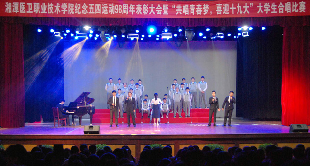 5月4日晚,我校纪念五四运动98周年表彰大会暨第十四届校园文化艺术节“共唱青春梦,喜迎十九大”大学生合唱比赛在校本部大学生活动中心隆重举行。校领导刘建强、左泽文、杨卫东、何文波,相关处室、二级学院负责人和学生代表1500余人参加活动。