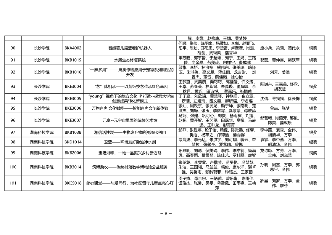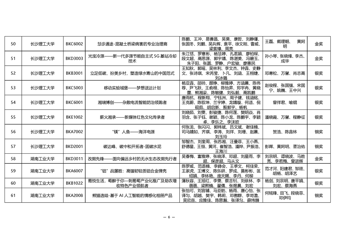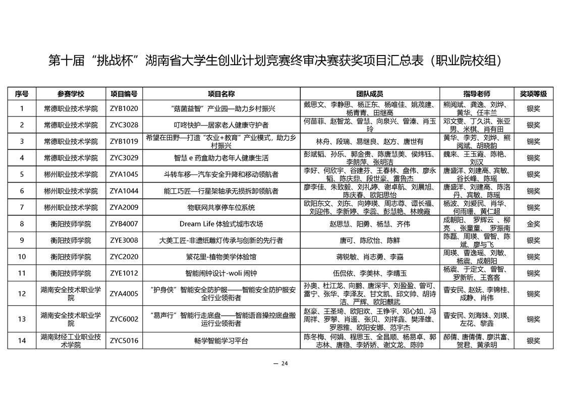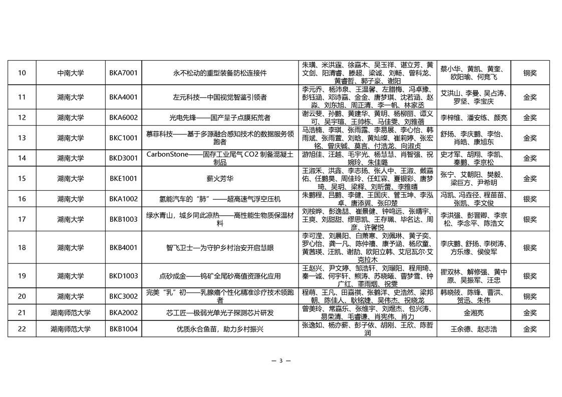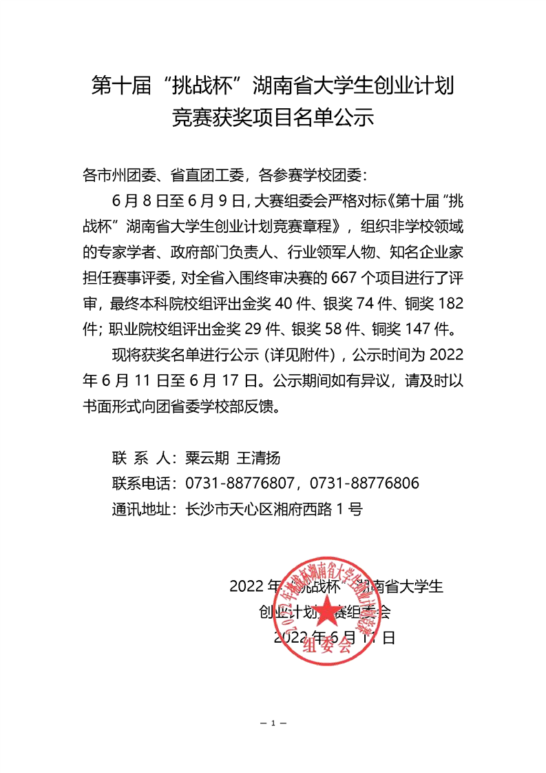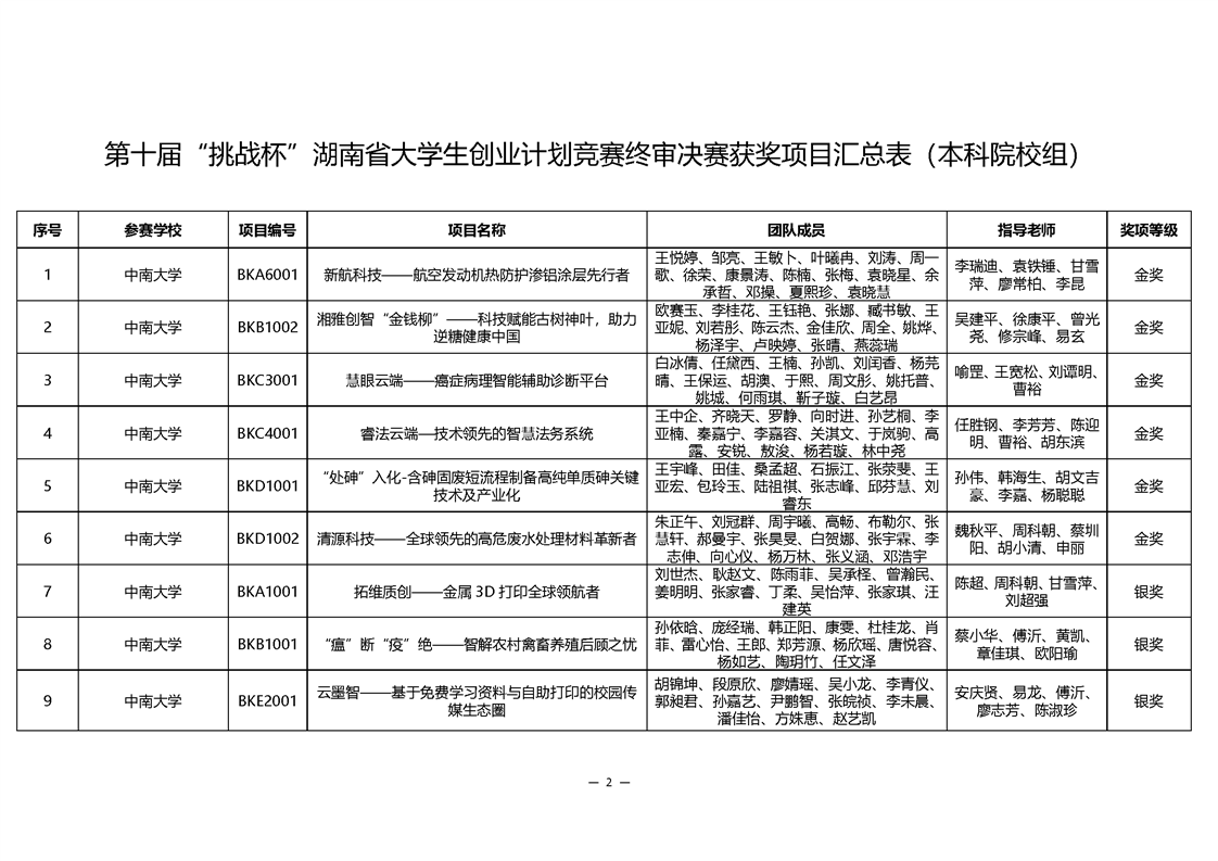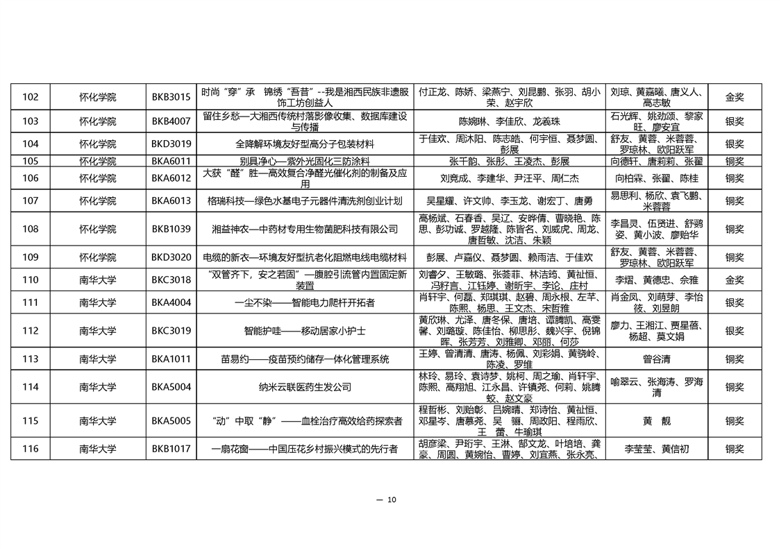 第十届“挑战杯”湖南省大学生创业计划竞赛获奖项目名单公示