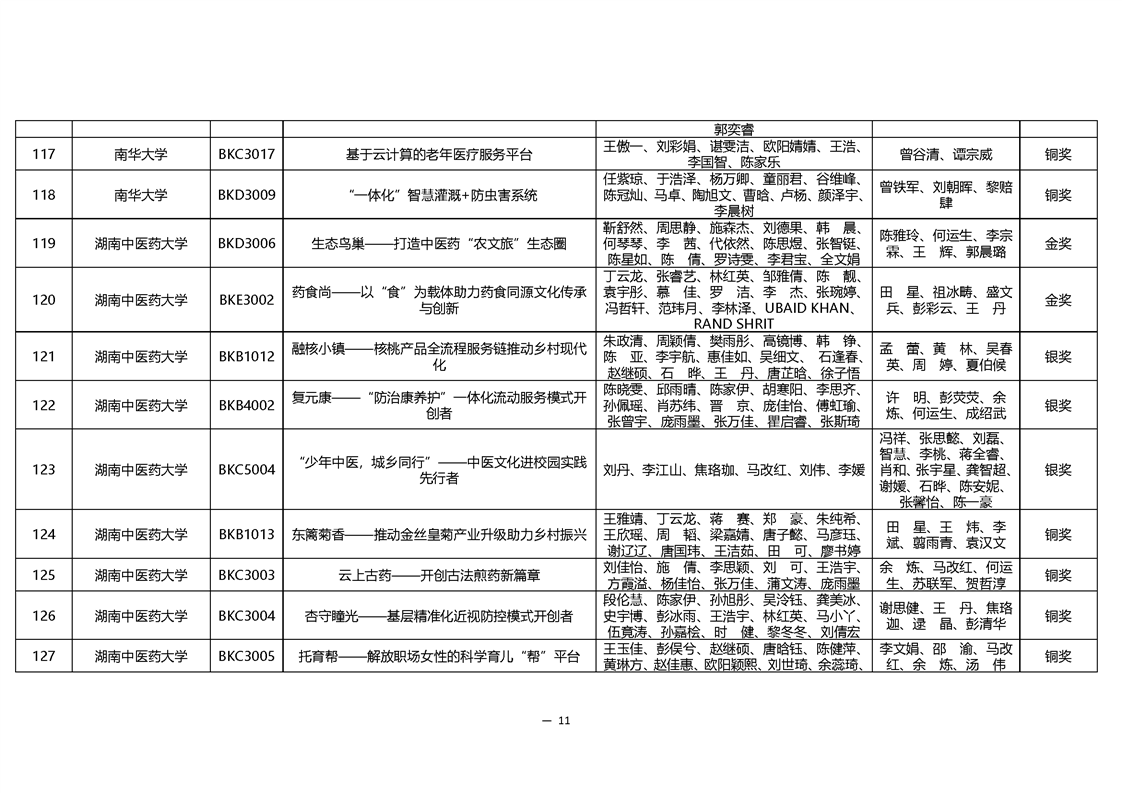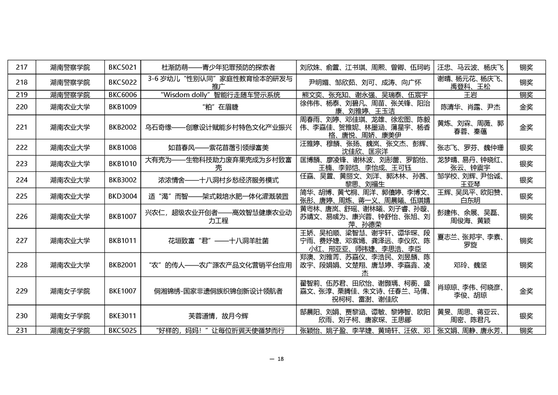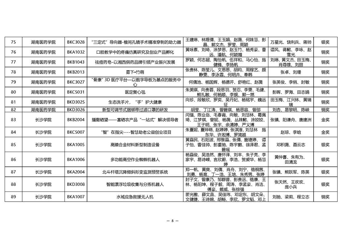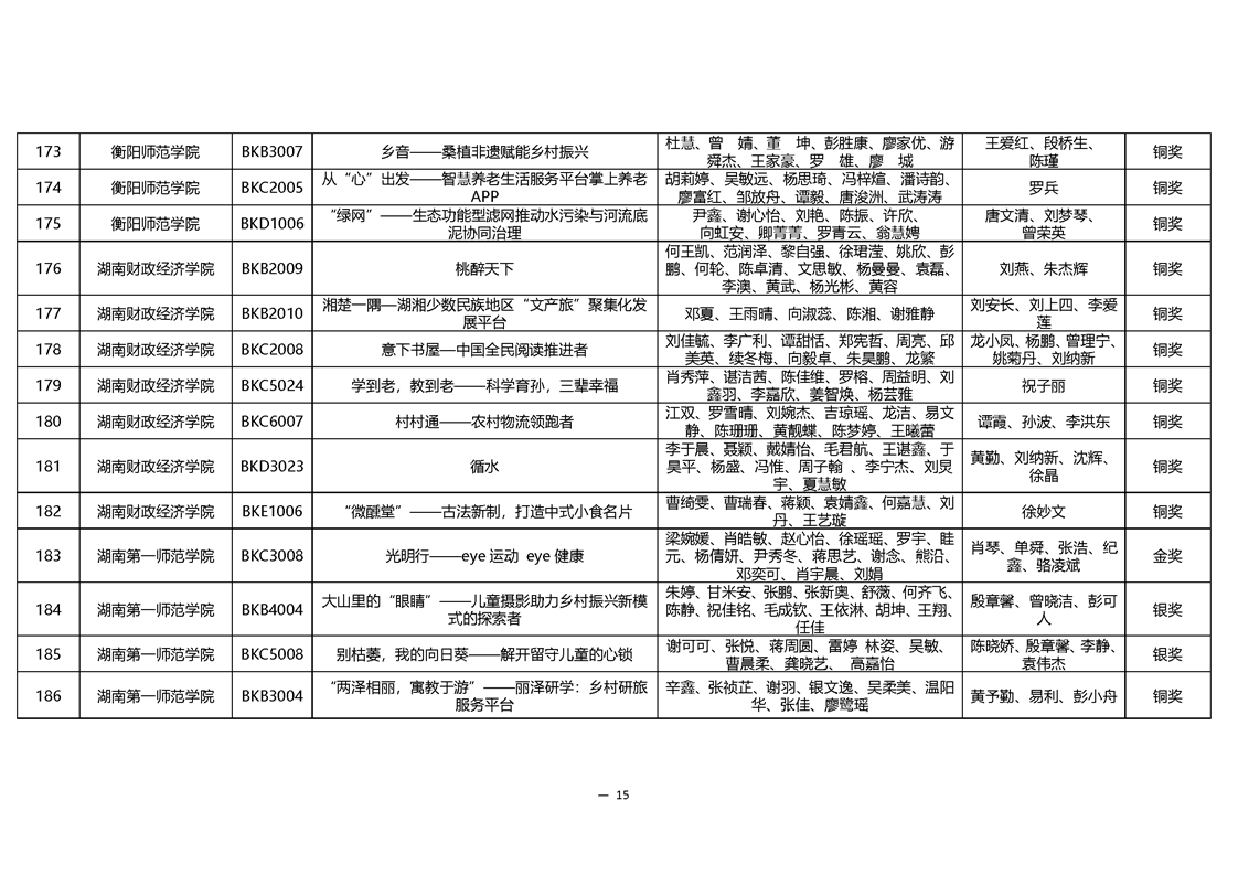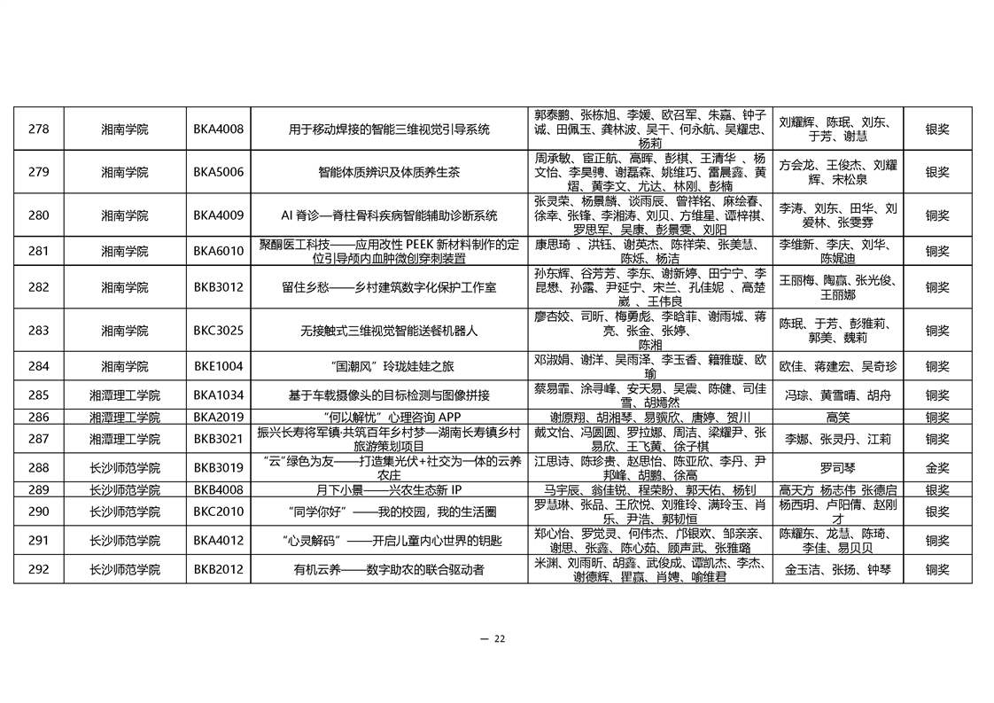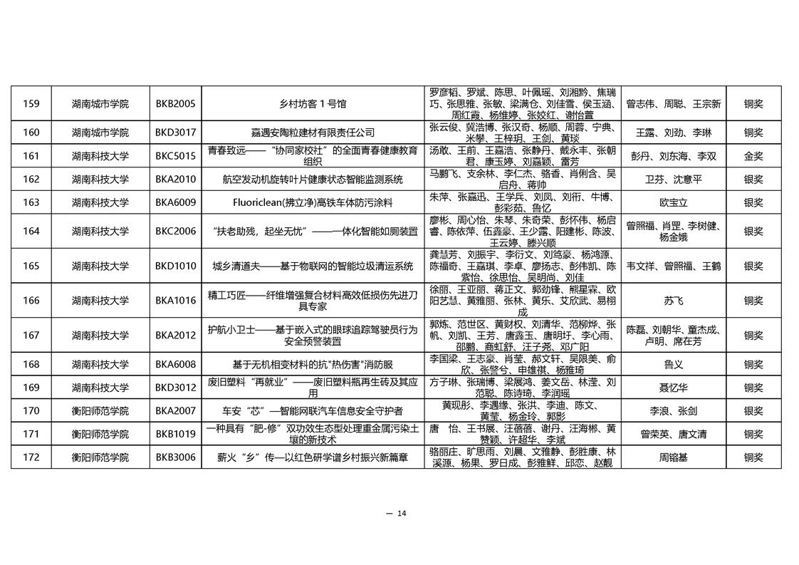 第十届“挑战杯”湖南省大学生创业计划竞赛获奖项目名单公示
