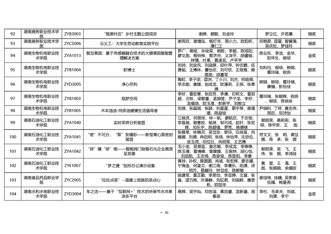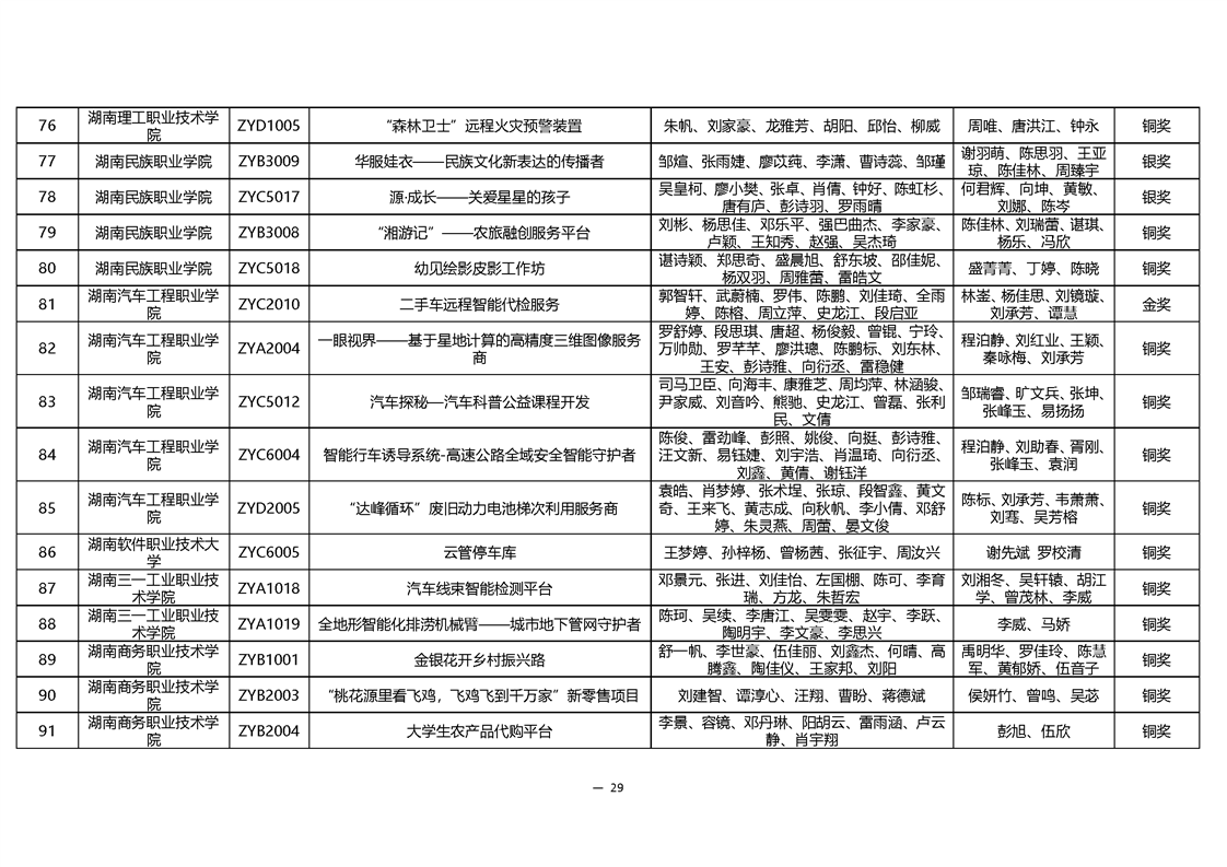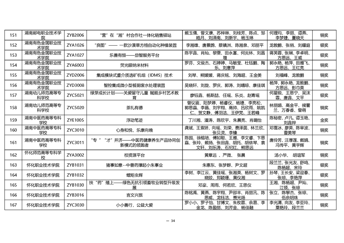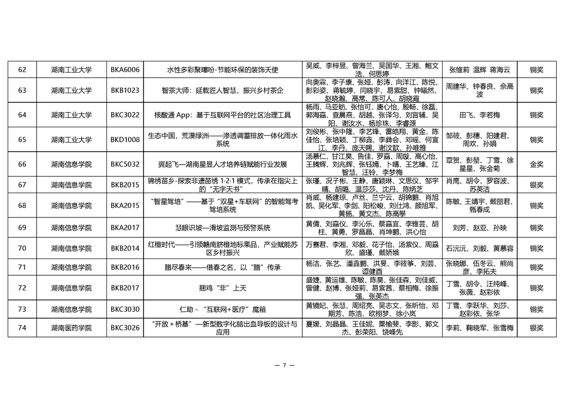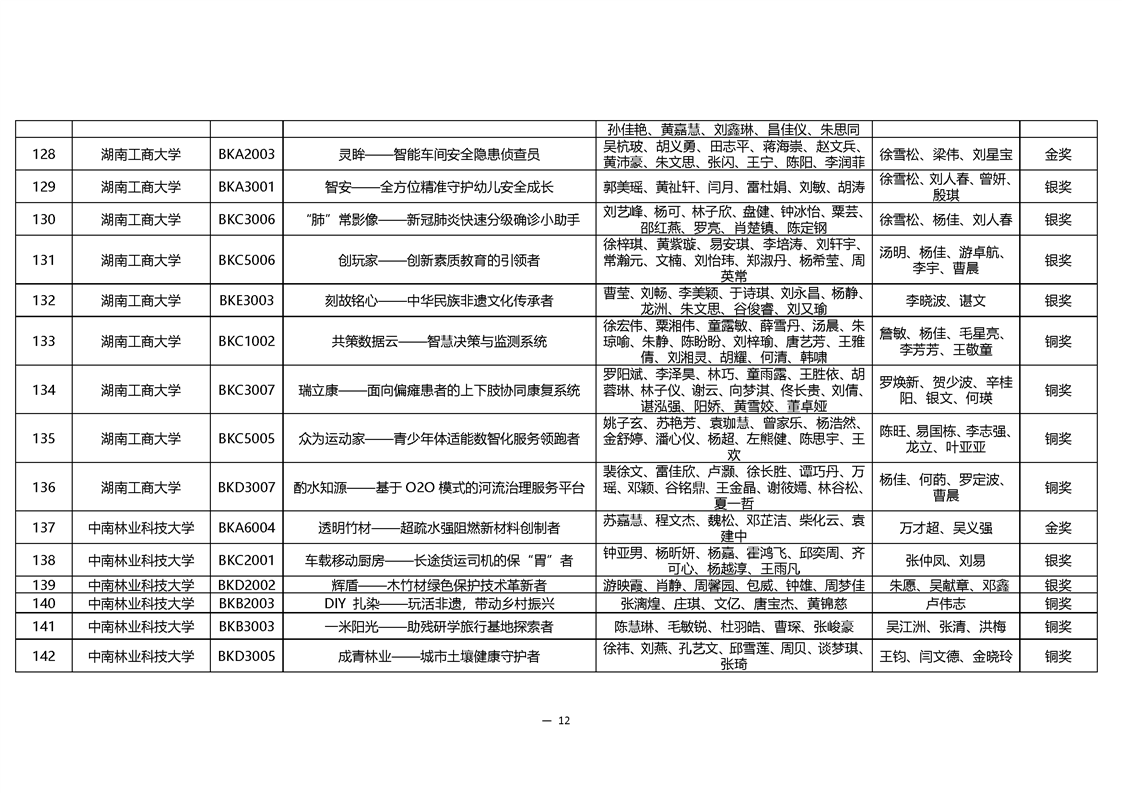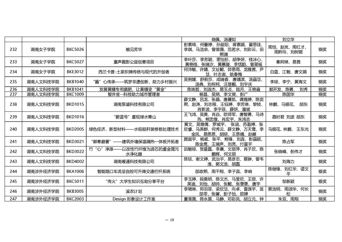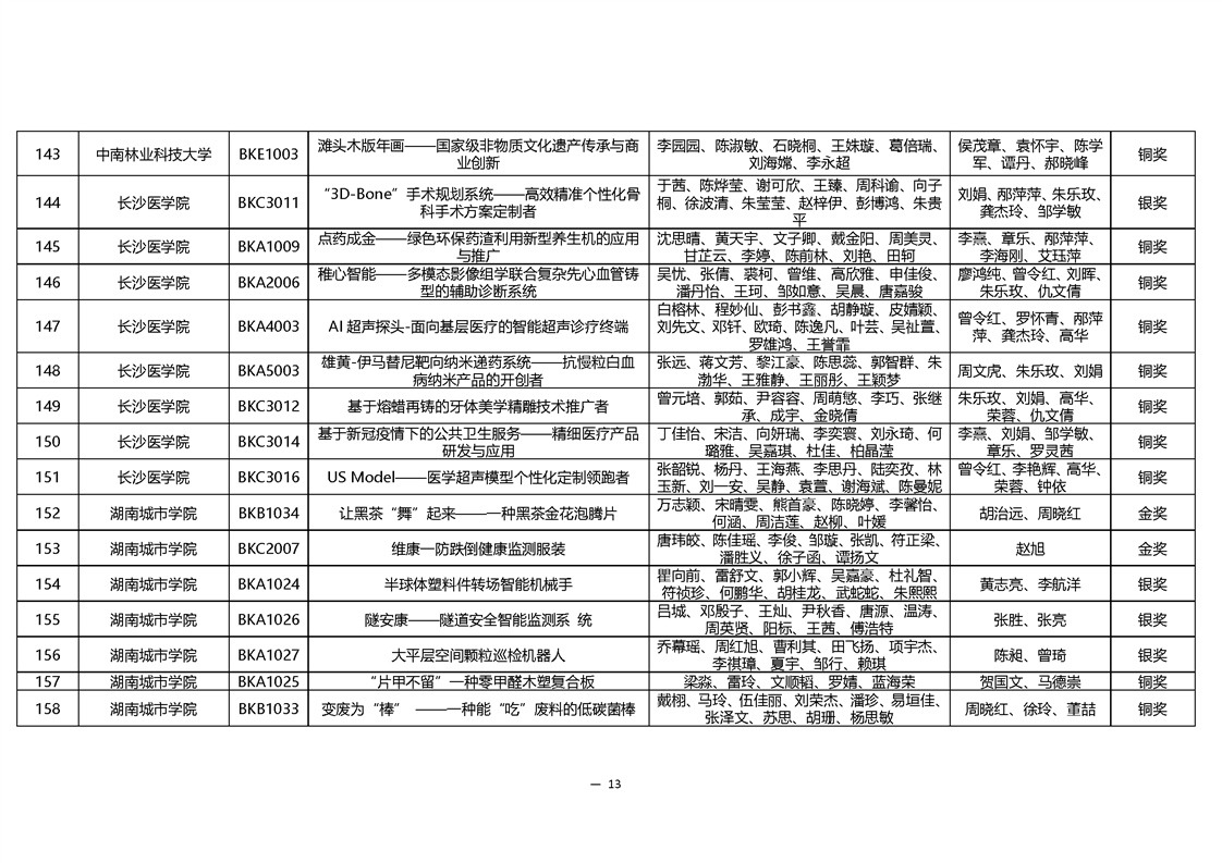 第十届“挑战杯”湖南省大学生创业计划竞赛获奖项目名单公示