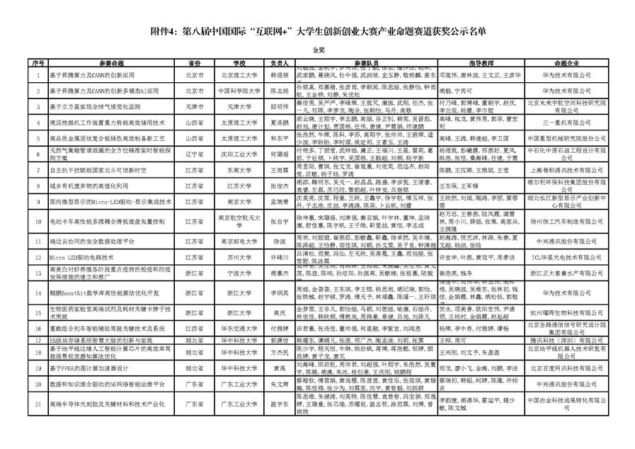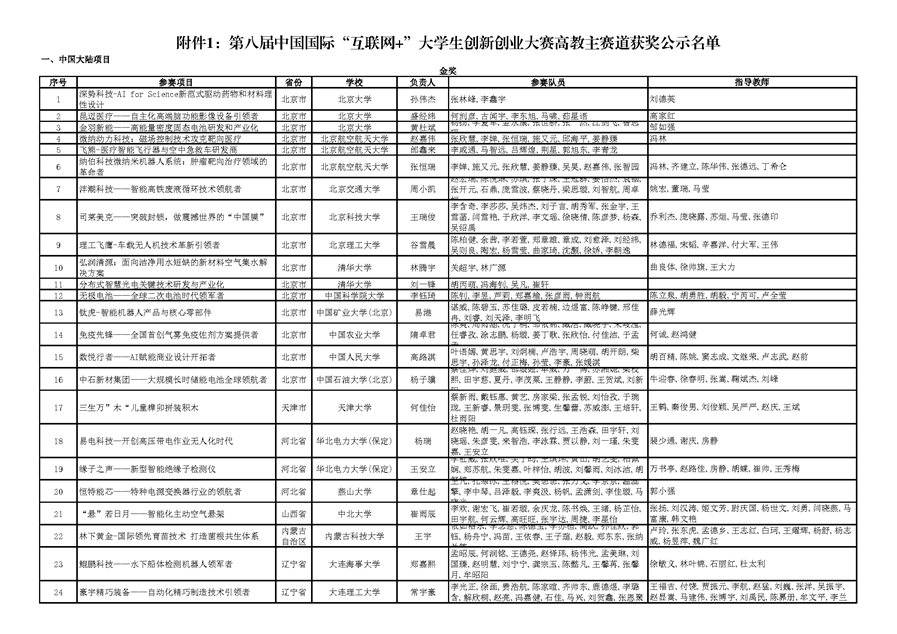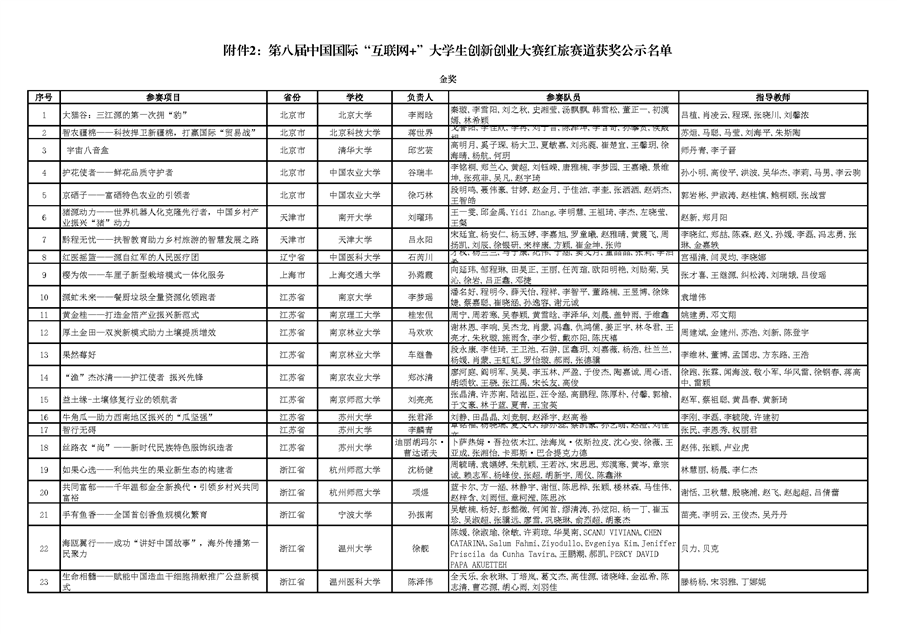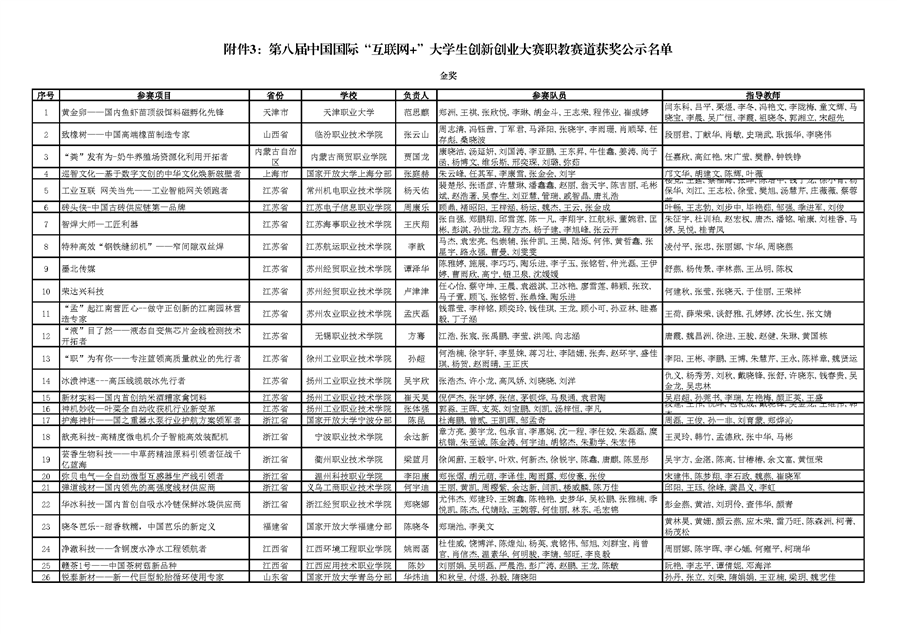 关于公示第八届中国国际“互联网+”大学生创新创业大赛总决赛有关赛事获奖名单的通知