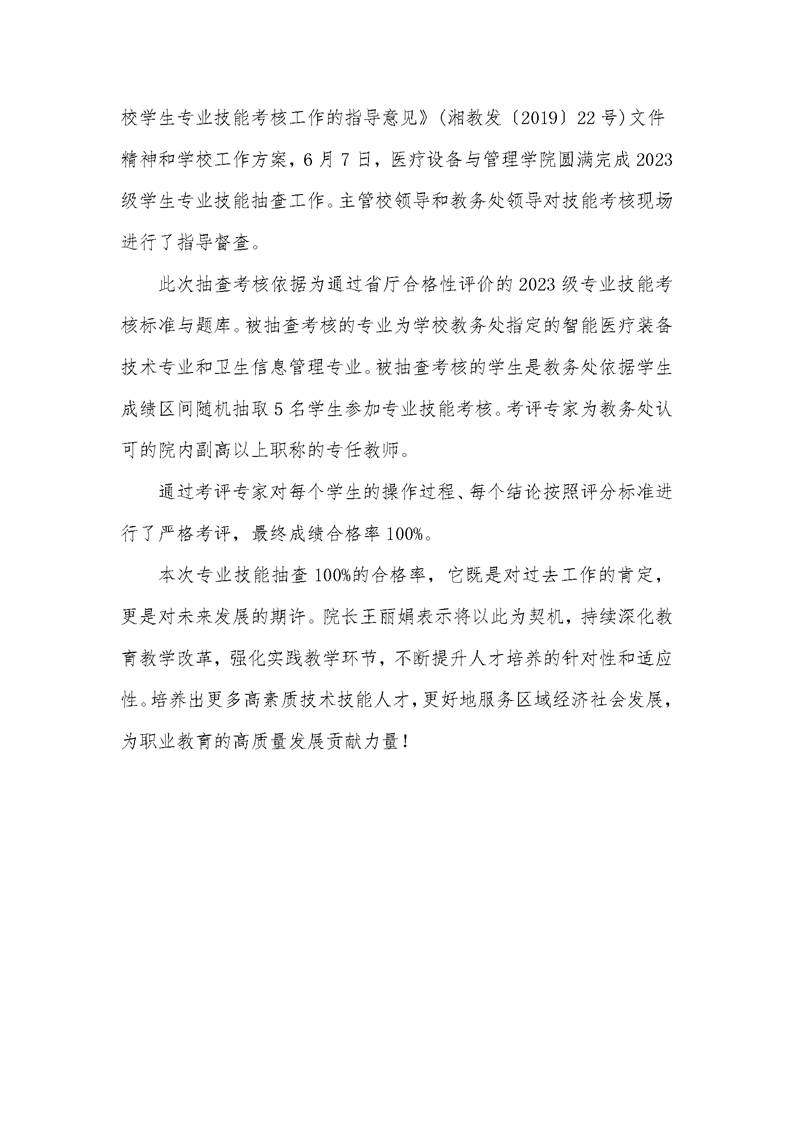 医疗设备与管理学院圆满完成2023级学生专业技能抽查工作