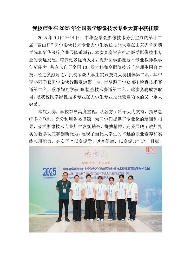 我校师生在2025年全国医学影像技术专业大赛中获佳绩