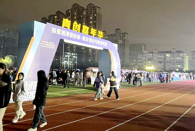 本网讯   10月14日晚,“我爱湘潭我的家——就业创业先锋进校园”巡回宣讲暨“青创嘉年华”专题活动在我校举行。湘潭市人民政府副市长陈若杨讲话并宣布活动启动,我校党委书记夏桢致欢迎词。湘潭市人社局党组书记、局长阳涛,全国人大代表、湘潭宏大真空技术股份有限公司总经理黄乐,湘潭人才集团有限公司党委书记、董事长龙国良以及市就业服务中心、市人力资源服务中心、市委共青团、市科技局等相关人员;我校党委委员、副校长成强、刘勇以及党政办、宣传统战部、团委、学工处、招就处、基建后勤处、保卫处负责人,各二级学院党总支书记、副书记、学生科长等3000余名师生共同参加了本次活动。
